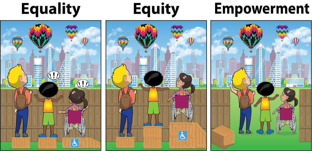 Equality is leaving the door open for anyone who has the means to approach it; EQUITY is ensuring there is a pathway to that door for those who need it.